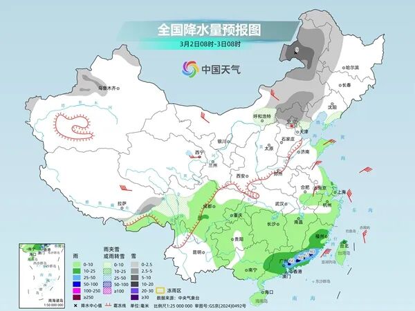 今明兩天(3月1日至2日),我國雨雪范圍較大,北方多地將現(xiàn)較強(qiáng)降雪,江南、華南降雨頻繁,部分地區(qū)仍有中到大雨,局地暴雨,公眾出行請留意交通安全。