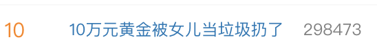 3月1日,話題“10萬元黃金被女兒當垃圾扔了”沖上微博熱搜。