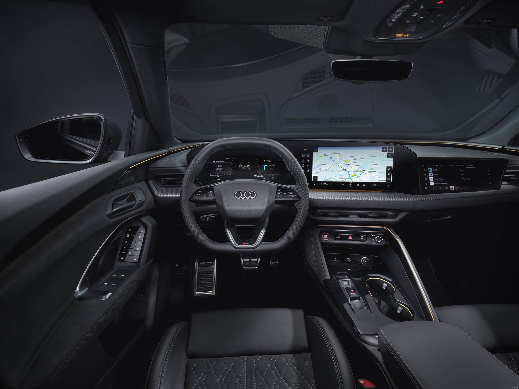 奧迪Q5L采用奧迪最新一代數字座艙,整體布局與全新A5L相似。由11.9英寸虛擬座艙與14.5英寸MMI觸控屏組成的一體式懸浮曲面雙聯屏,配合可選裝的10.9英寸副駕娛樂屏,共同構建了多屏聯動的沉浸式交互體驗。內飾大量運用皮質材料與金屬飾板,中控臺以簡潔線條勾勒,鋼琴烤漆面板點綴其間,氛圍燈支持多色調節并可隨駕駛模式切換色調,營造出強烈的科技豪華氛圍。針對中國市場開發的“云感座椅”,前排坐墊腿托支持60mm行程可調,配合4向氣動腰托和高達109mm的側翼支撐,能在激烈駕駛時提供出色的側向包裹與長途舒適性。除入門版外,前排座椅均配備加熱、通風及按摩功能,全系標配三區自動空調與PM2.5過濾系統,高配車型更搭載B&O高級音響,滿足用戶對豪華舒適體驗的期待。