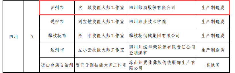 川酒企業再添國家級技能大師工作室