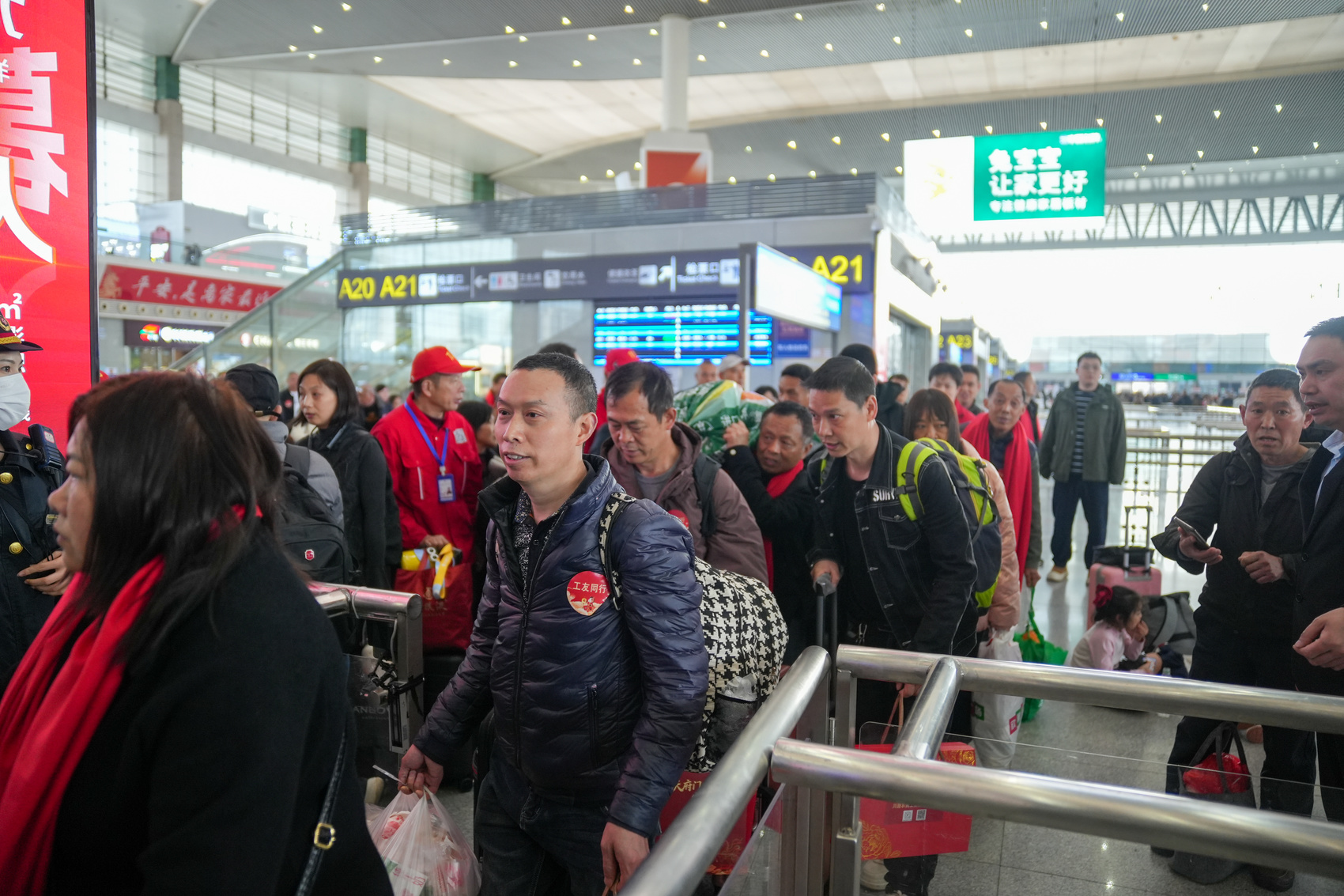 “這趟專列共計(jì)服務(wù)760余名川籍務(wù)工人員,我們采取‘沿線接站’模式,組織眉山東、樂(lè)山、宜賓西等沿線站點(diǎn)務(wù)工人員就近上車,最大限度減少中轉(zhuǎn)奔波,讓返崗之路更高效便捷。”成都東站客運(yùn)科科長(zhǎng)鄢鷗介紹。此次務(wù)工專列精準(zhǔn)對(duì)接務(wù)工人員出行需求,鐵路部門提前摸排客流信息、細(xì)化運(yùn)輸組織方案,從候車、檢票到乘車,全程提供專屬服務(wù),全力保障工友們平安順利出行。