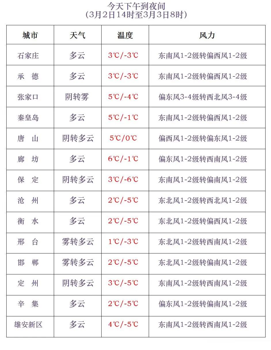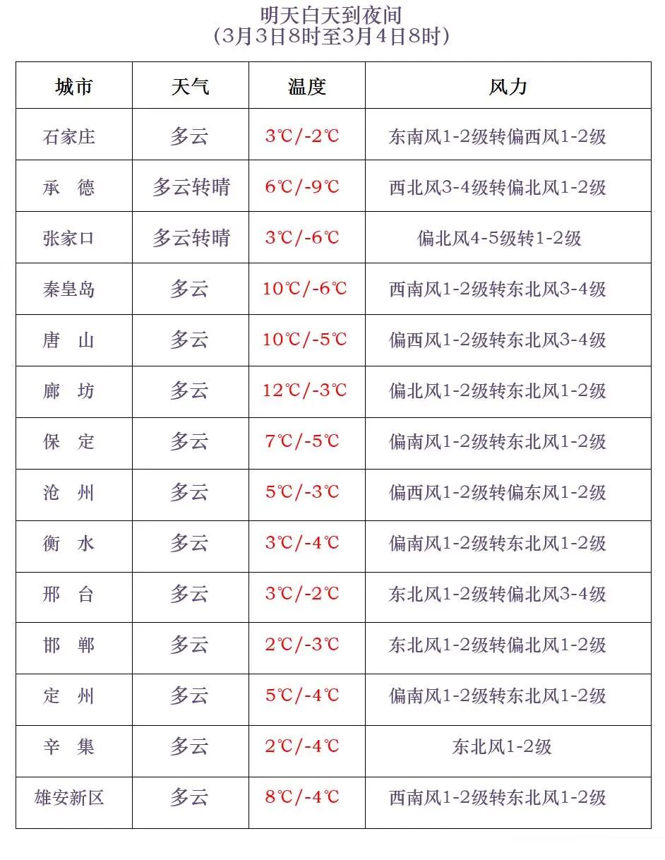 明天夜間到4日,全省多云間陰,保定、廊坊以北地區和石家莊、邢臺、邯鄲三個地區的西部有小雪或雨夾雪。