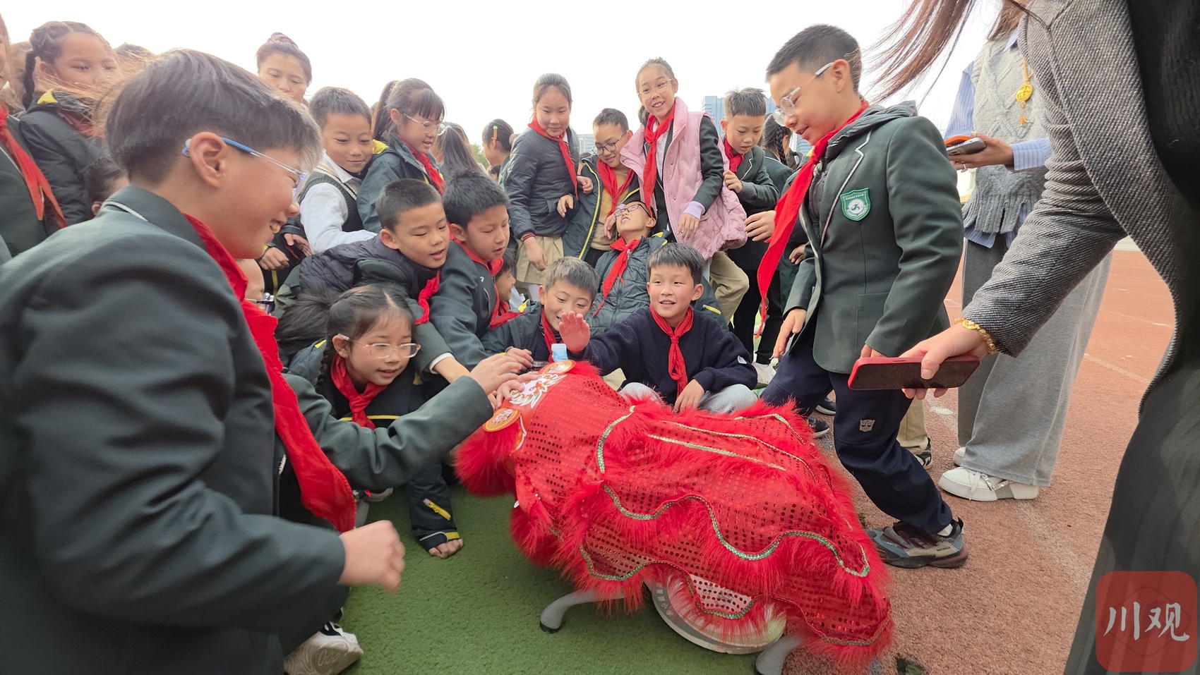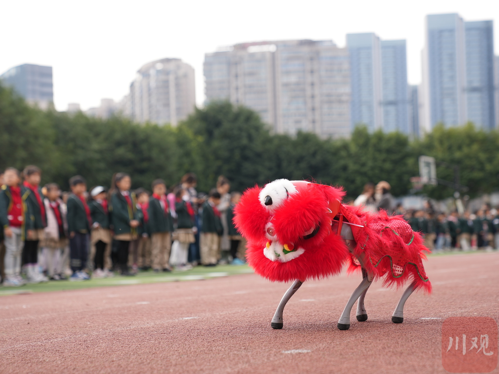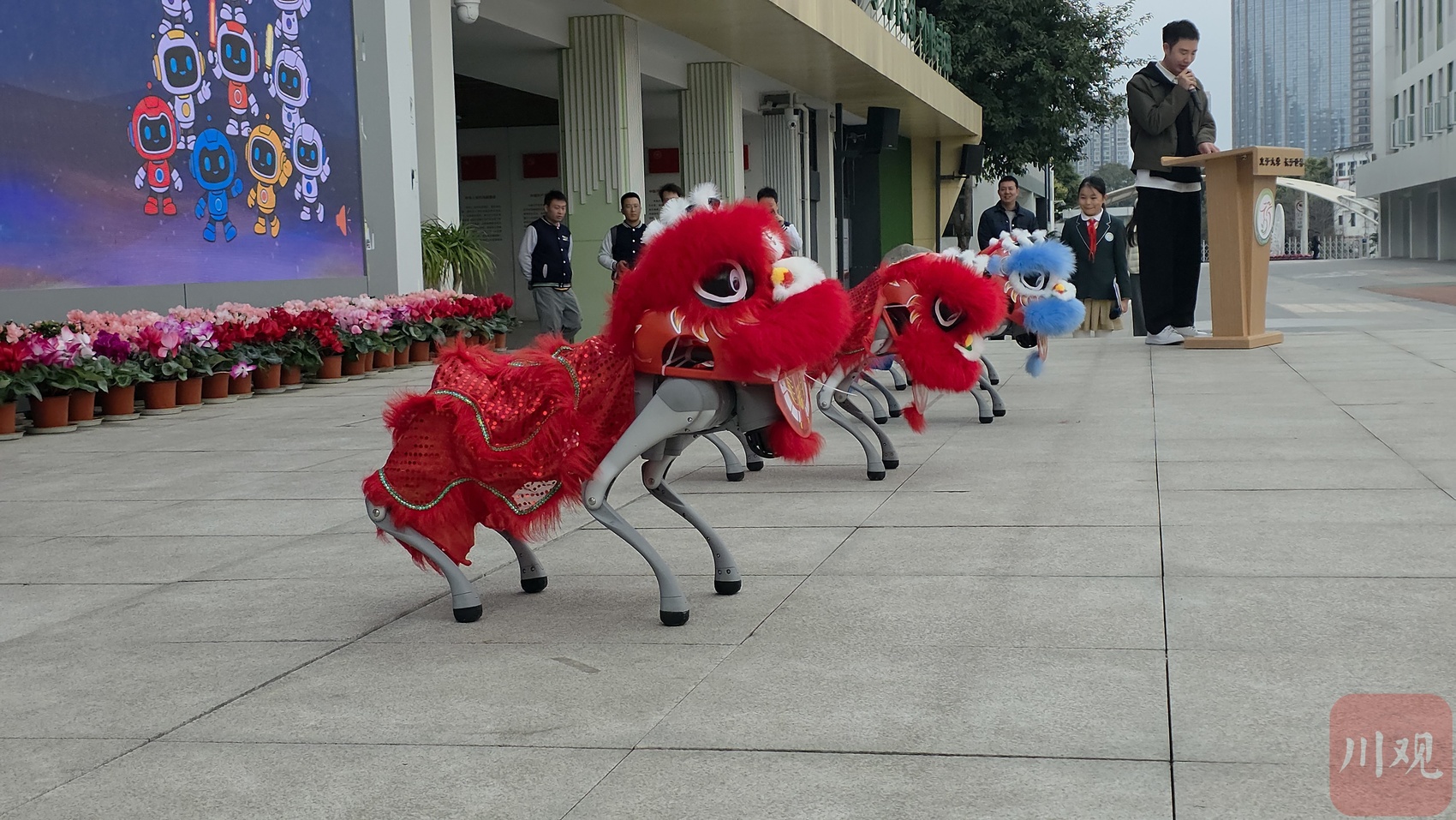 機(jī)器狗化身醒獅為孩子們表演。