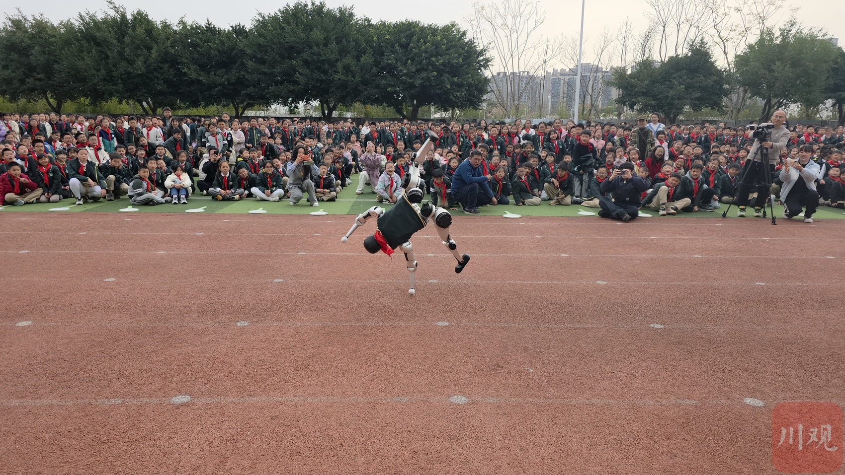 人形機(jī)器人為師生表演側(cè)空翻,引得掌聲不斷。