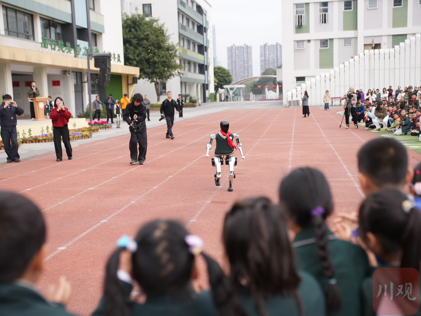 人形機(jī)器人亮相四川師范大學(xué)附屬高新菁蓉小學(xué)開(kāi)學(xué)第一課。