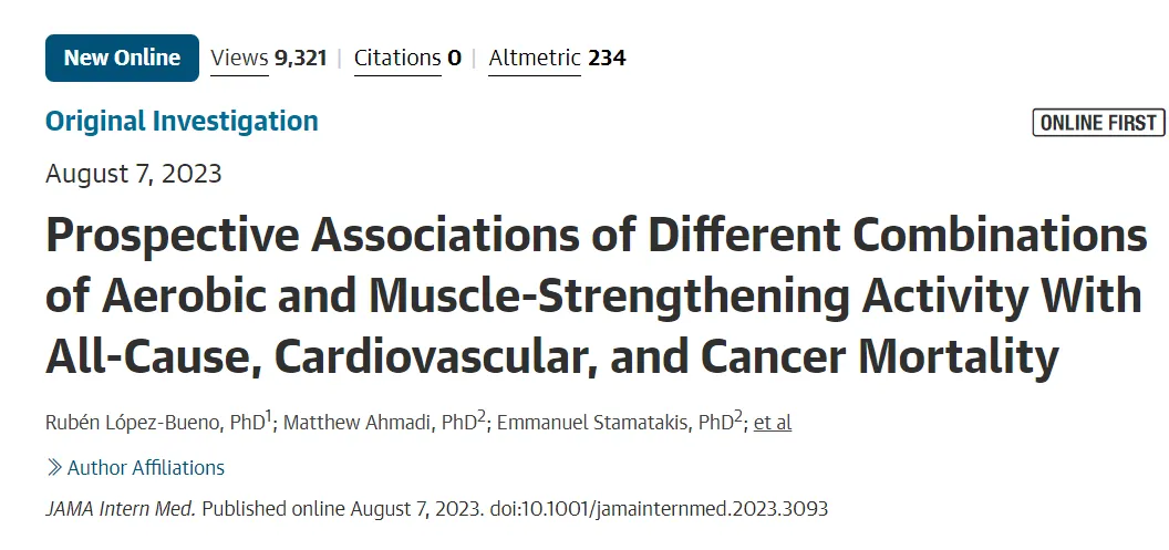 ②Prospective Associations of Different Combinations of Aerobic and Muscle-Strengthening Activity With All-Cause, Cardiovascular, and Cancer Mortality. JAMA Intern Med. August 7, 2023.