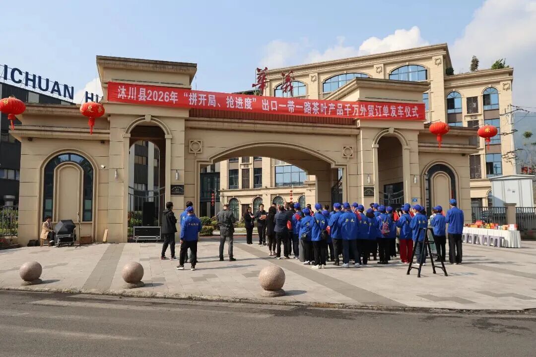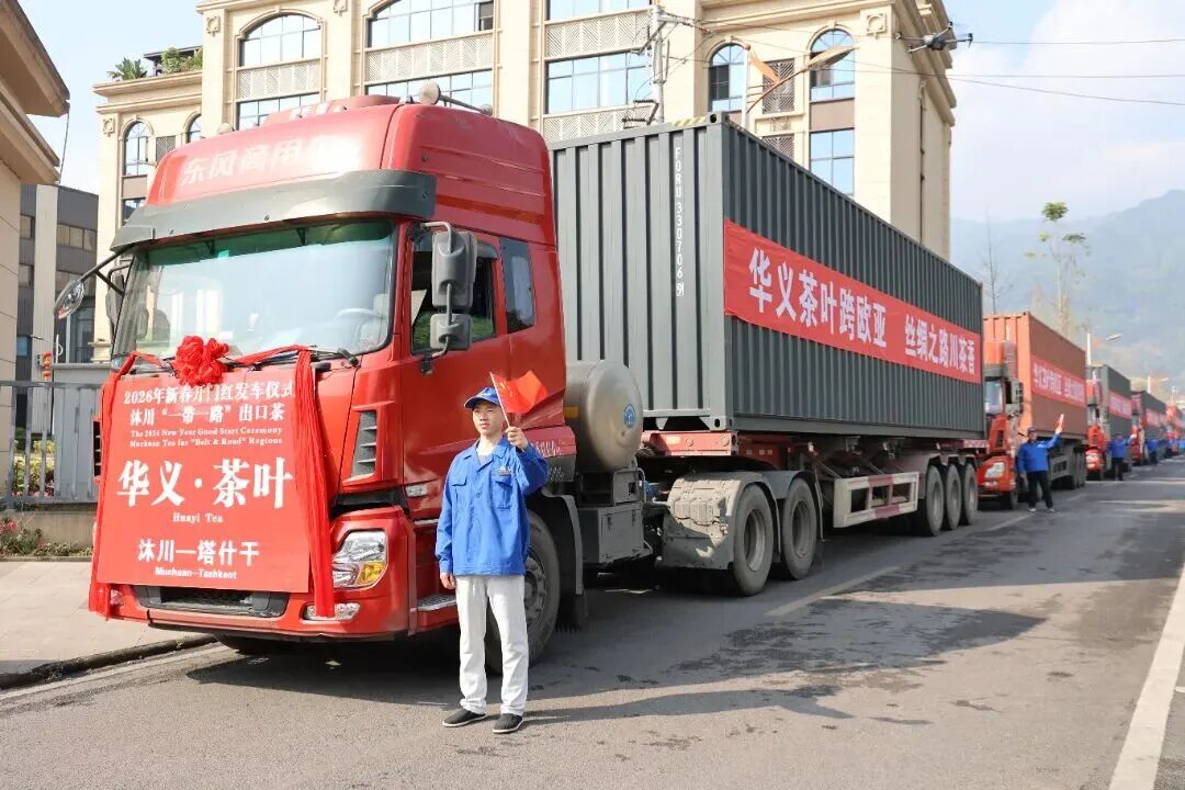 2月27日,沐川縣2026年“拼開局 搶進度”出口“一帶一路”茶葉產品千萬外貿訂單發車儀式在四川華義生物科技有限公司舉行。隨著發車指令下達,10輛滿載“沐川造”茶葉的貨車鳴笛啟程,駛往中亞市場,標志著沐川茶產業在新春伊始成功拿下千萬外貿訂單,實現外貿出口“開門紅”。