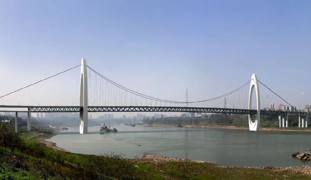 大橋西起黃桷坪立交,銜接八橫線白黃段,向東跨越長江后止于南岸區(qū)二塘立交,銜接鹿角隧道,全長約2.9公里,采用“上層雙六+下層雙六及軌道”斷面形式,大橋上層為城市快速路;下層為城市主干路。
