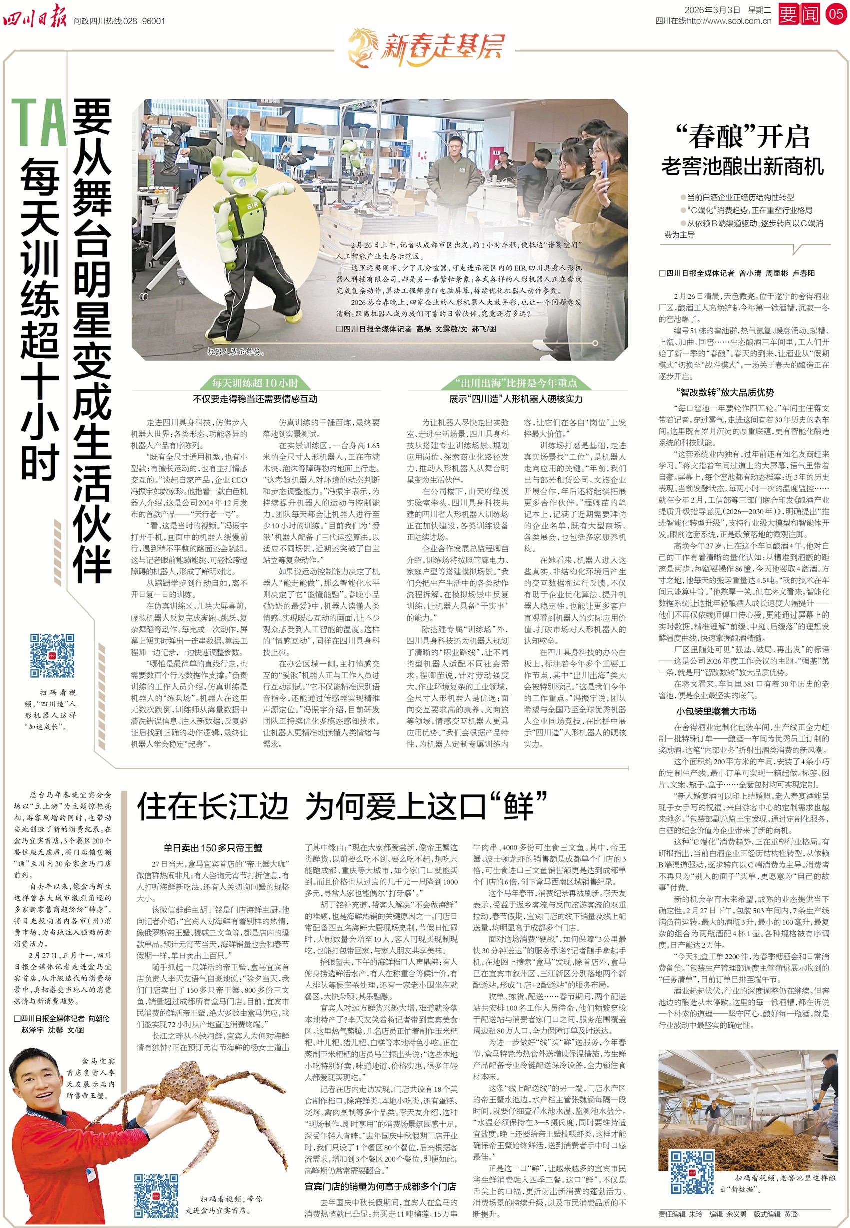 今年總臺(tái)春晚的小品《奶奶的最?lèi)?ài)》中,機(jī)器人讀懂人類(lèi)情感、實(shí)現(xiàn)暖心互動(dòng)的畫(huà)面,讓不少觀眾感受到人工智能的溫度。而在成都的一家科技企業(yè),這樣的“情感互動(dòng)”同樣在上演。機(jī)器人距離成為我們可靠的日常伙伴,究竟還有多遠(yuǎn)?答案就在今日五版當(dāng)中。