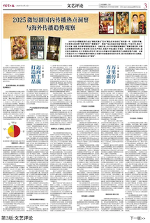 近期,《中國藝術報》文藝評論欄目整版刊發《乘風破浪的微短劇——2025微短劇國內傳播熱點洞察與海外傳播趨勢觀察》(以下簡稱《洞察》),由人民網輿情數據中心/人民在線品牌研究院基于微短劇國內傳播數據和出?,F狀總結編寫。