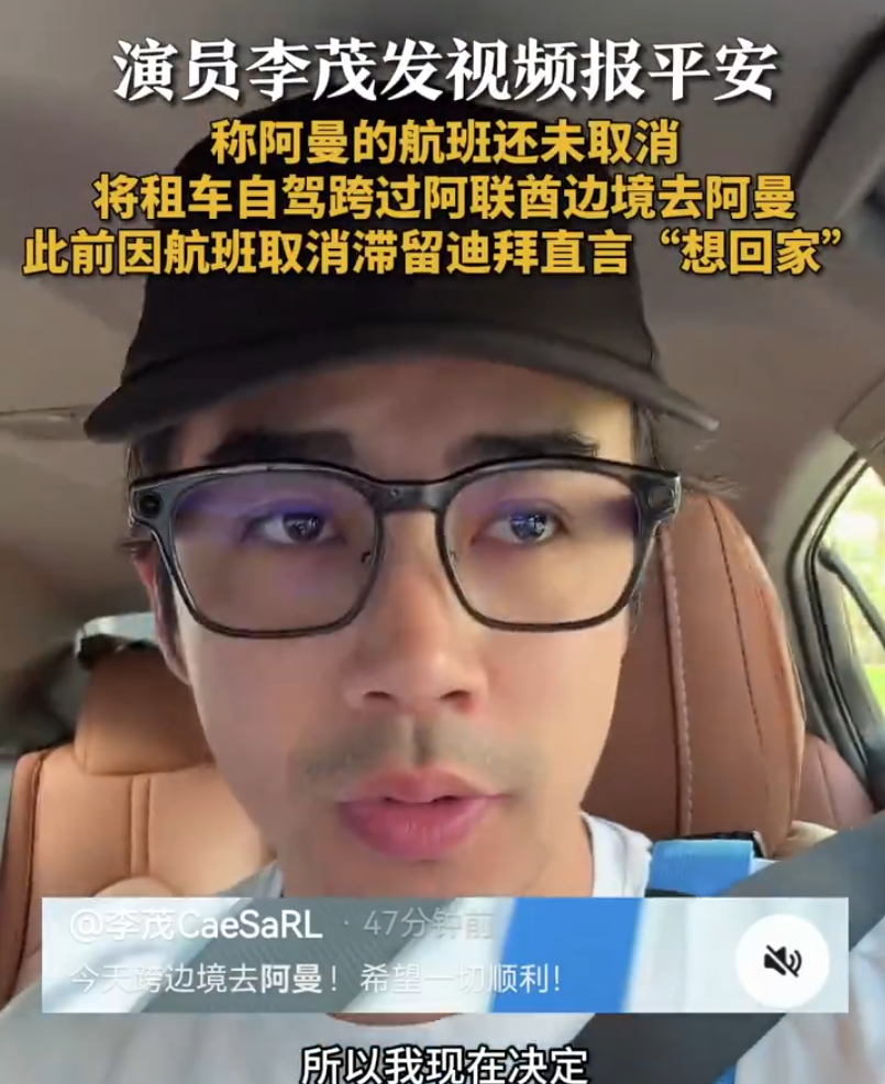 3月1日,李茂曾發布視頻稱,在迪拜遭遇航班取消無法回國的情況,直言“想回家”。據報道,演員李茂與妻子弦子在迪拜度假期間,因中東戰事升級導致機場遭導彈碎片波及、航班全面停運,全家被迫滯留。