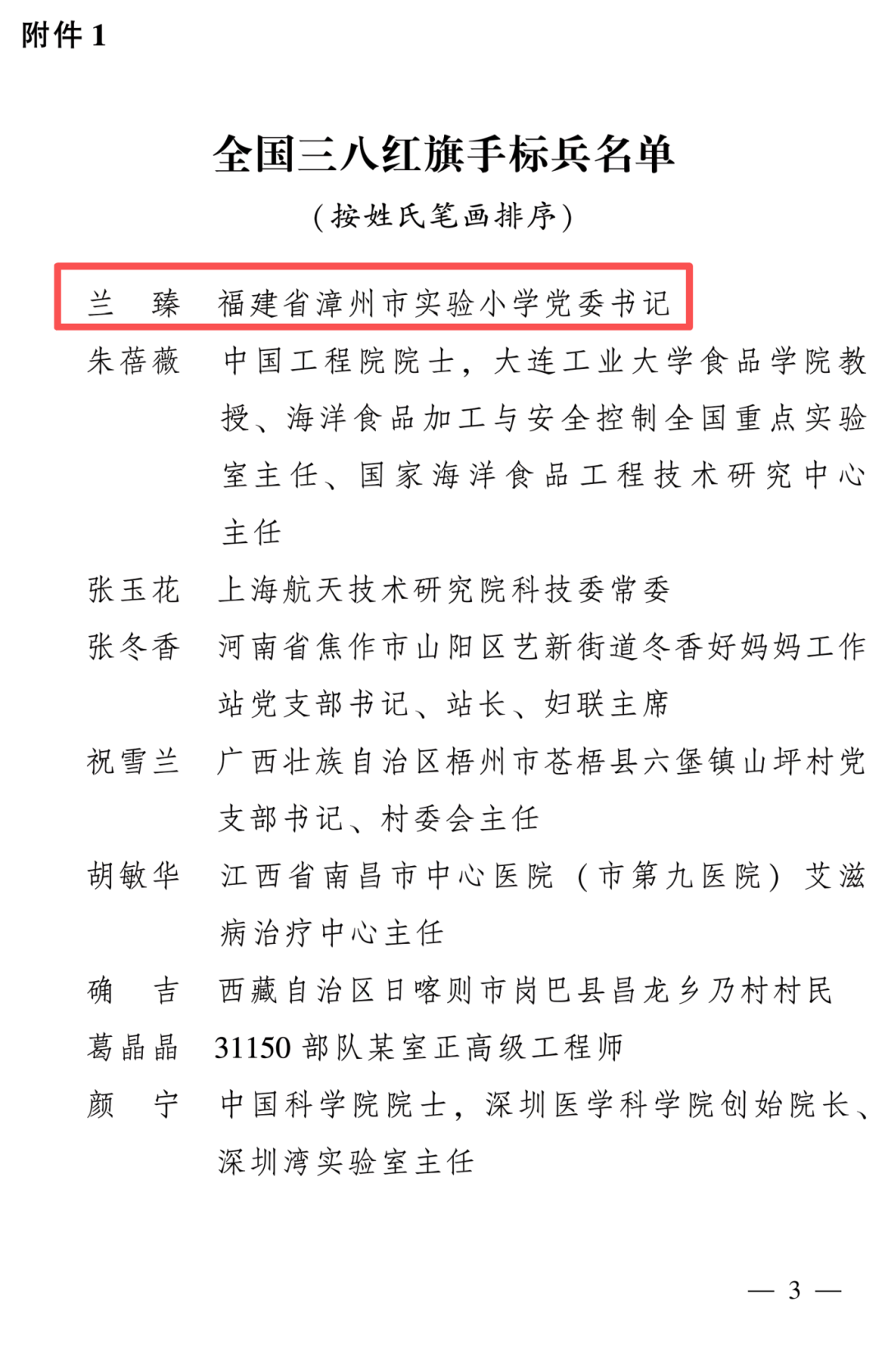 全國(guó)三八紅旗手名單