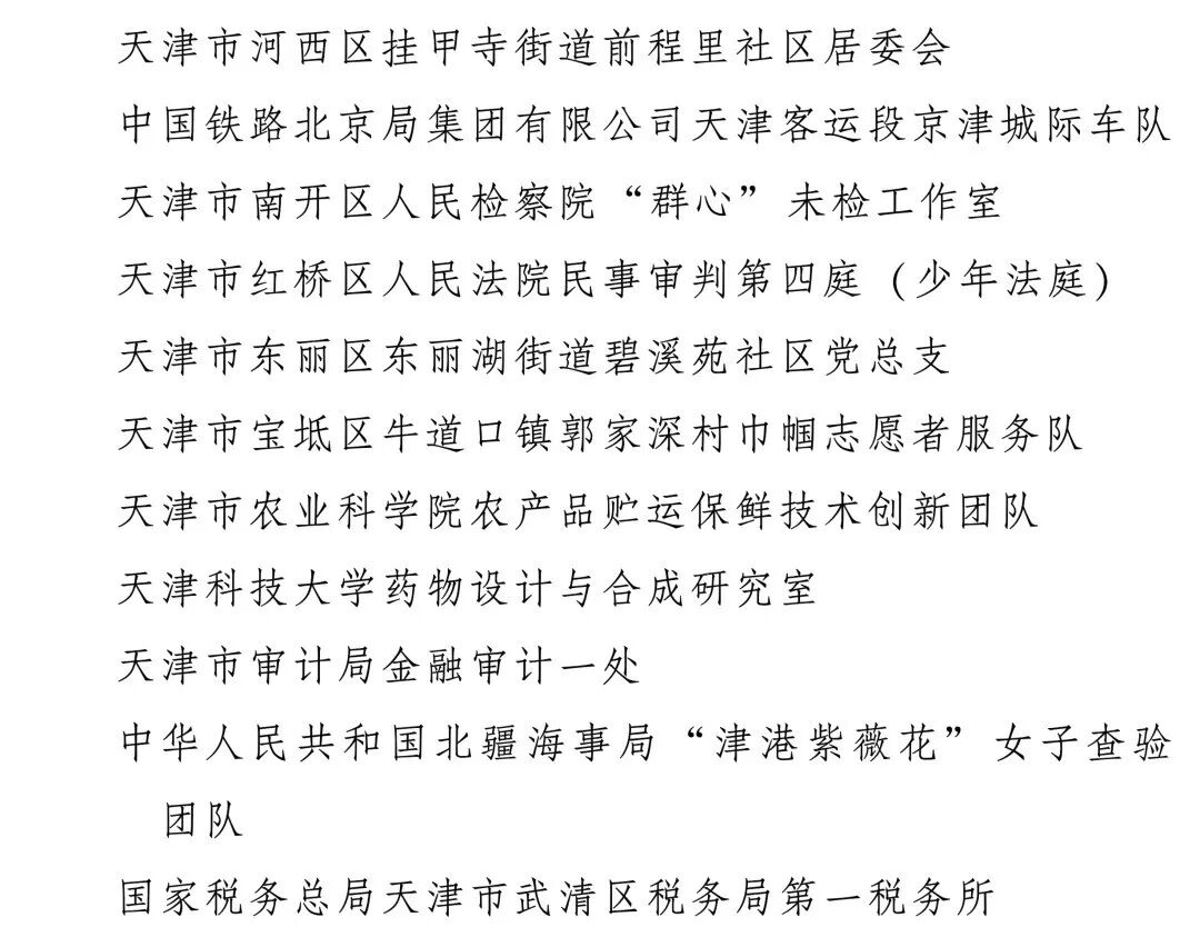 其中,天津這些個人、集體獲表彰: