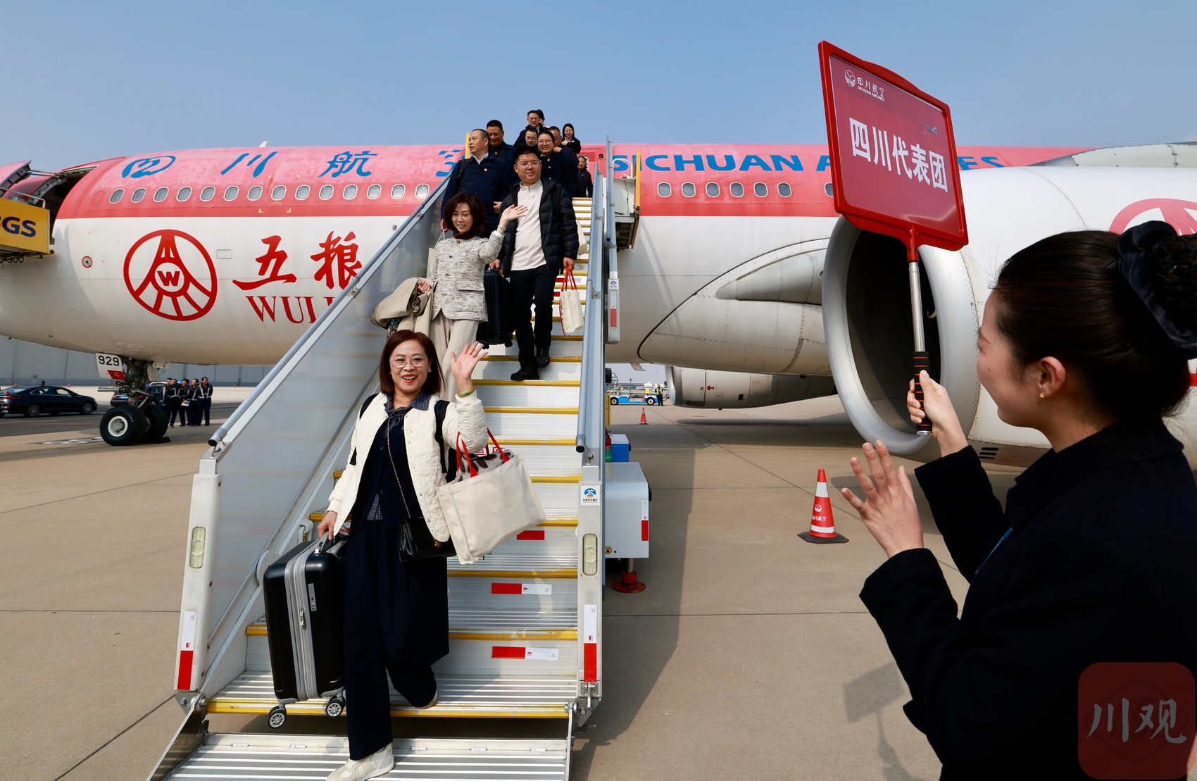 3月3日13時許,出席十四屆全國人大四次會議的四川代表團乘機抵達北京首都機場。帶著9100萬巴蜀兒女的期盼與重托,代表們正式進入“兩會時間”。