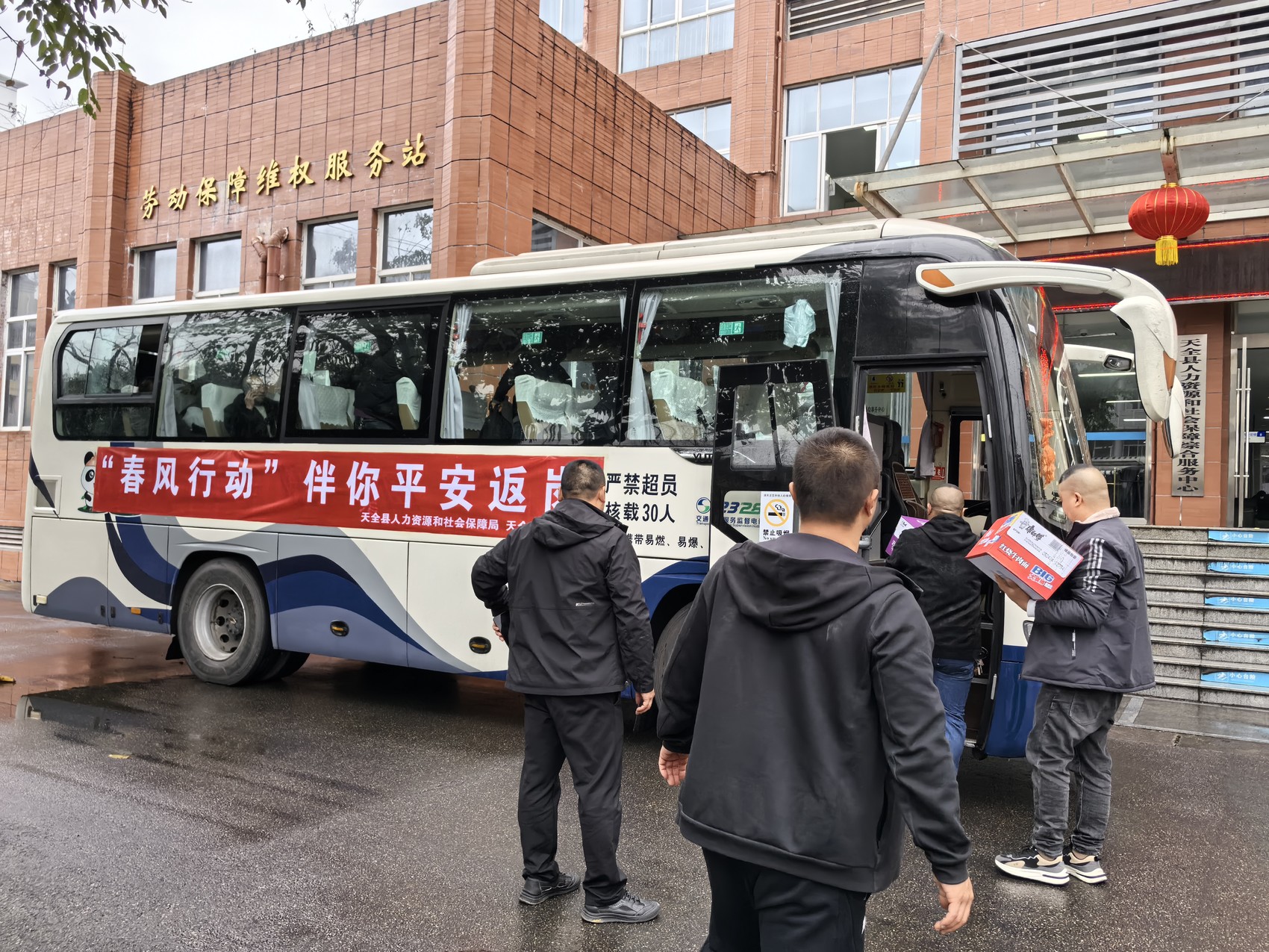 天全縣人社部門聯合縣總工會舉行發車儀式,并將一份份“愛心旅途禮包”送到務工人員手中,保障長途行程所需?,F場,務工人員精神飽滿,在工作人員引導下有序登車。