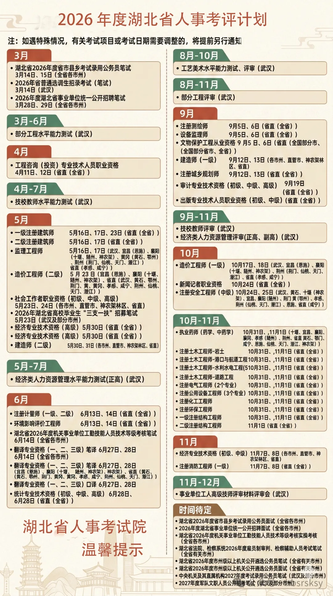 2026年度湖北省人事考評日歷