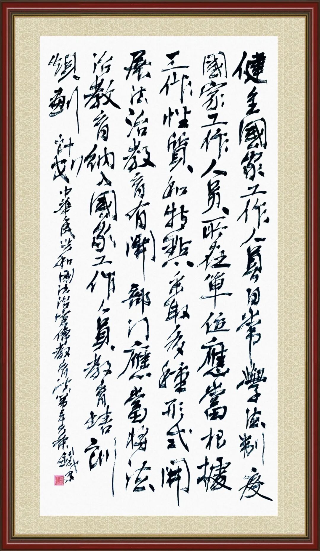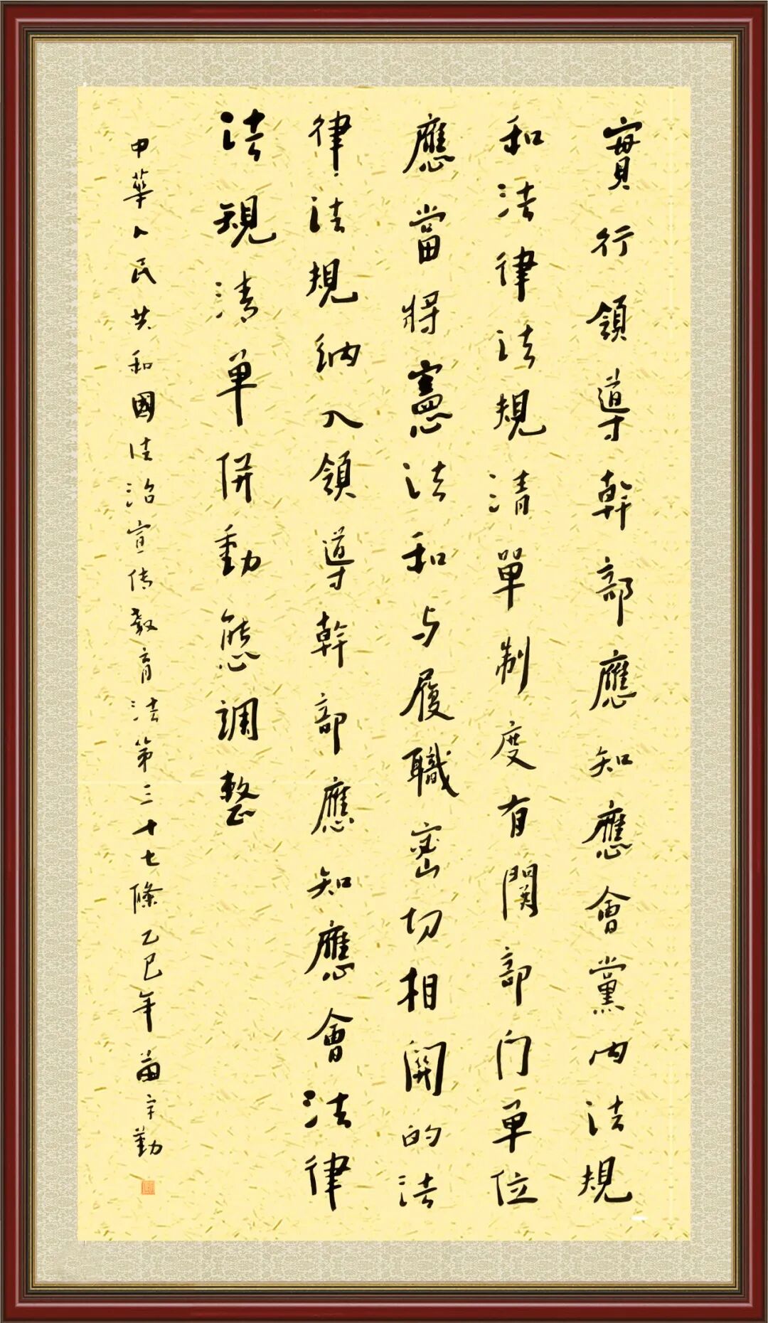 2020年7月11日,由法治日報社主辦的“書·法”系列活動正式啟動,先后書寫《中華人民共和國民法典》《中華人民共和國憲法》《中華人民共和國民營經濟促進法》等21部法律法規。