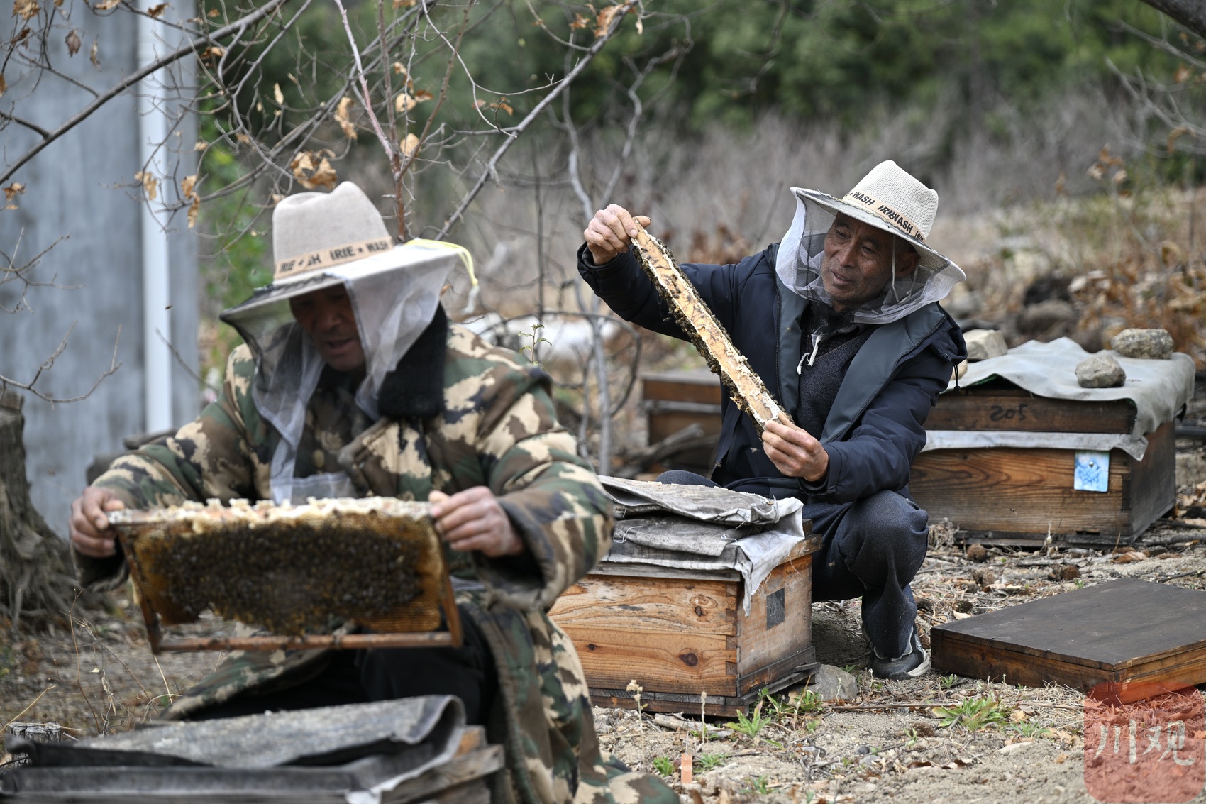 蜂農(nóng)查看繁蜂情況。