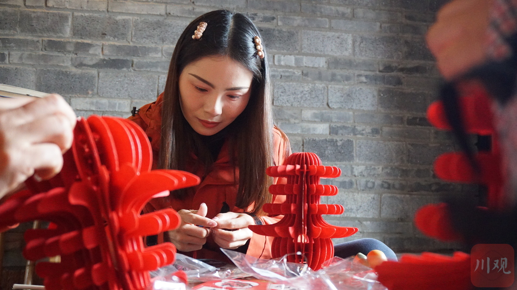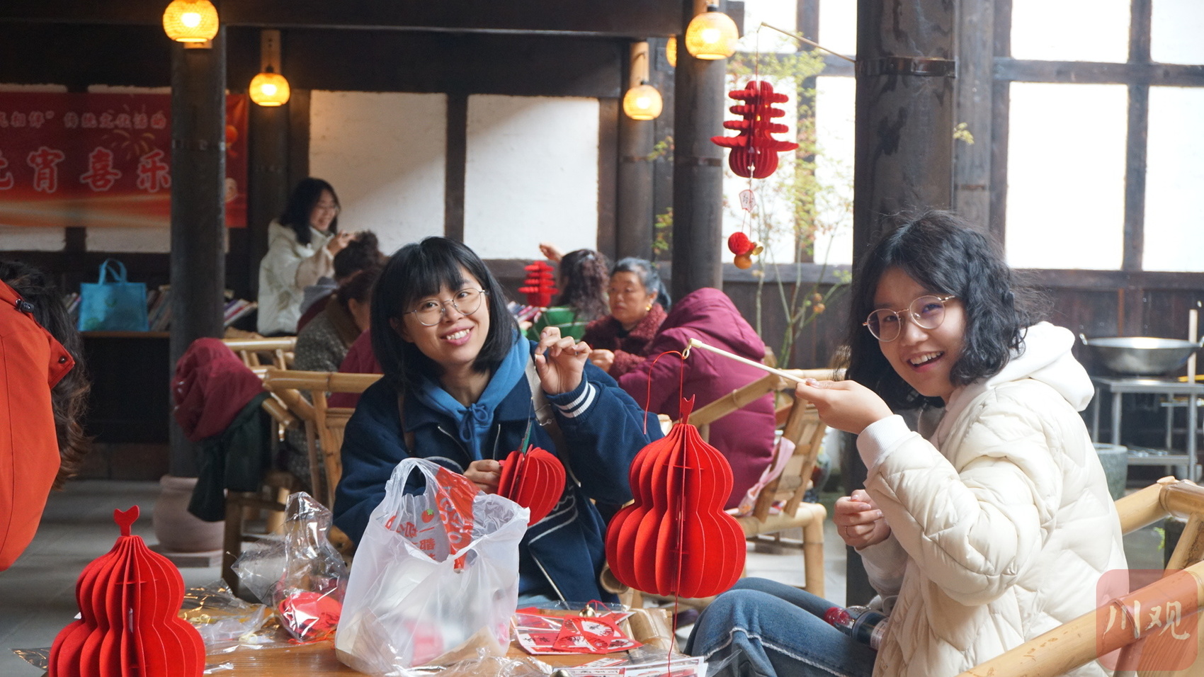 2026年3月3日,在成都市雙流區黃龍溪古鎮工會老碼頭驛站內,當地居民正在制作花燈。