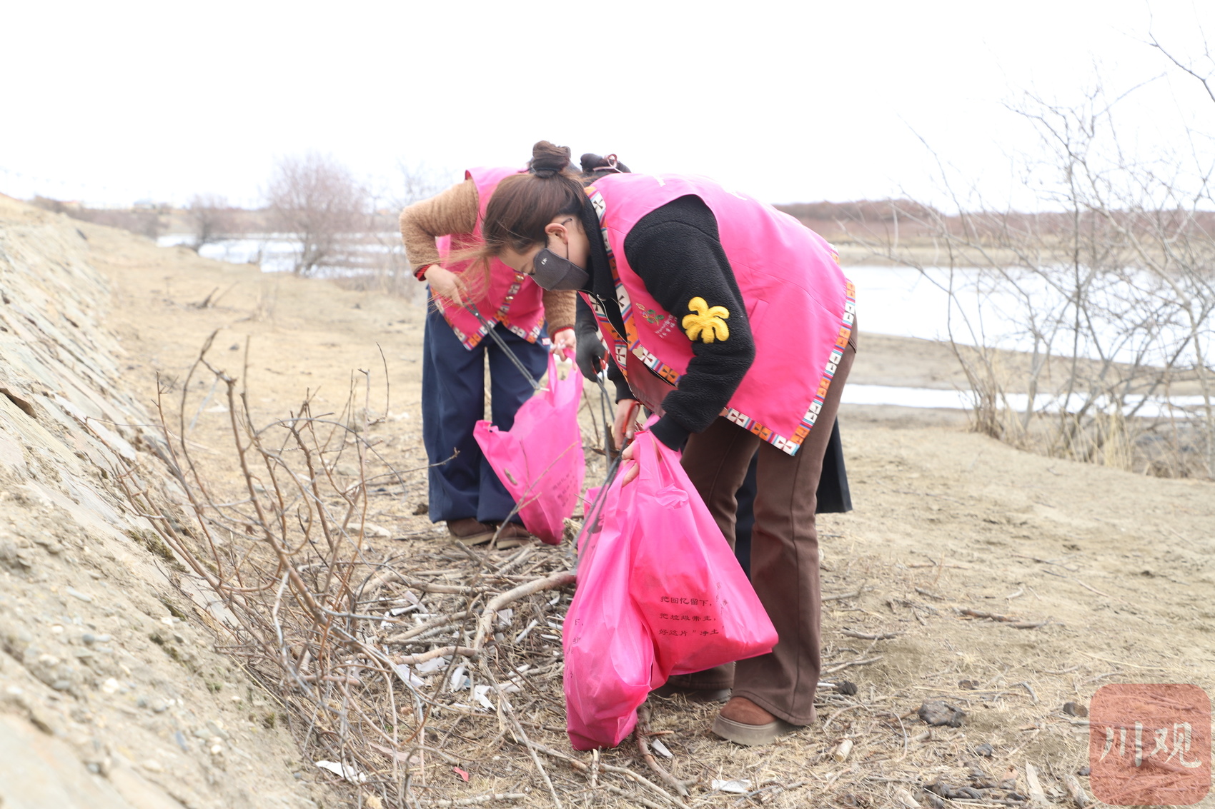 河岸邊,幾個粉色的身影在緩緩移動。走近一看,幾名身穿粉色馬甲的婦女,一手提著編織袋,一手握著火鉗,將塑料瓶、食品包裝等垃圾,一一夾進編織袋。“我們是阿媽啦黃河巾幗志愿巡河護河隊?!边@支隊伍的執行隊長斯紅英告訴記者。