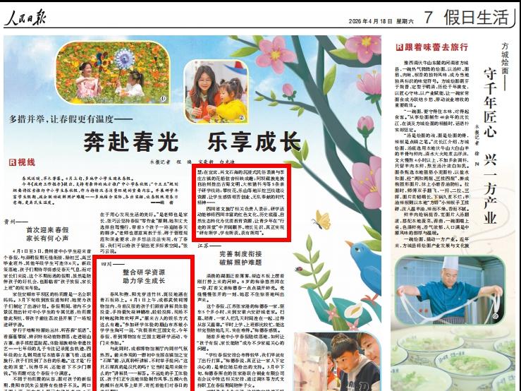 其中,備受關(guān)注的研學(xué)旅游已成為“百業(yè)+文旅”的“流量新入口”。據(jù)悉,研學(xué)旅游是四川文化和旅游產(chǎn)業(yè)鏈建設(shè)十大重點(diǎn)領(lǐng)域之一,2024年,文化和旅游部啟動(dòng)研學(xué)旅游基地品質(zhì)提升試點(diǎn)工作,確定四川為全國(guó)首批6個(gè)試點(diǎn)省份之一。剛剛過去的清明假期疊加中小學(xué)春假,研學(xué)游成為全省火熱的文旅市場(chǎng)一大亮點(diǎn),小游客們涌進(jìn)各大文博場(chǎng)館、景區(qū),在行走中感悟文化,在體驗(yàn)中收獲成長(zhǎng)。