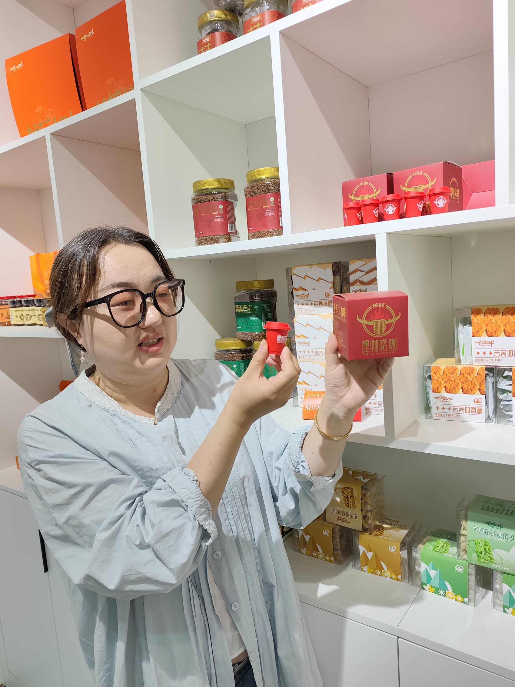 “我們是以苦蕎咖啡粉形式銷售,可沖泡飲品,目前主要在寧波市場銷售,西昌這家體驗店也代理銷售。”周俊瀅補充道。
