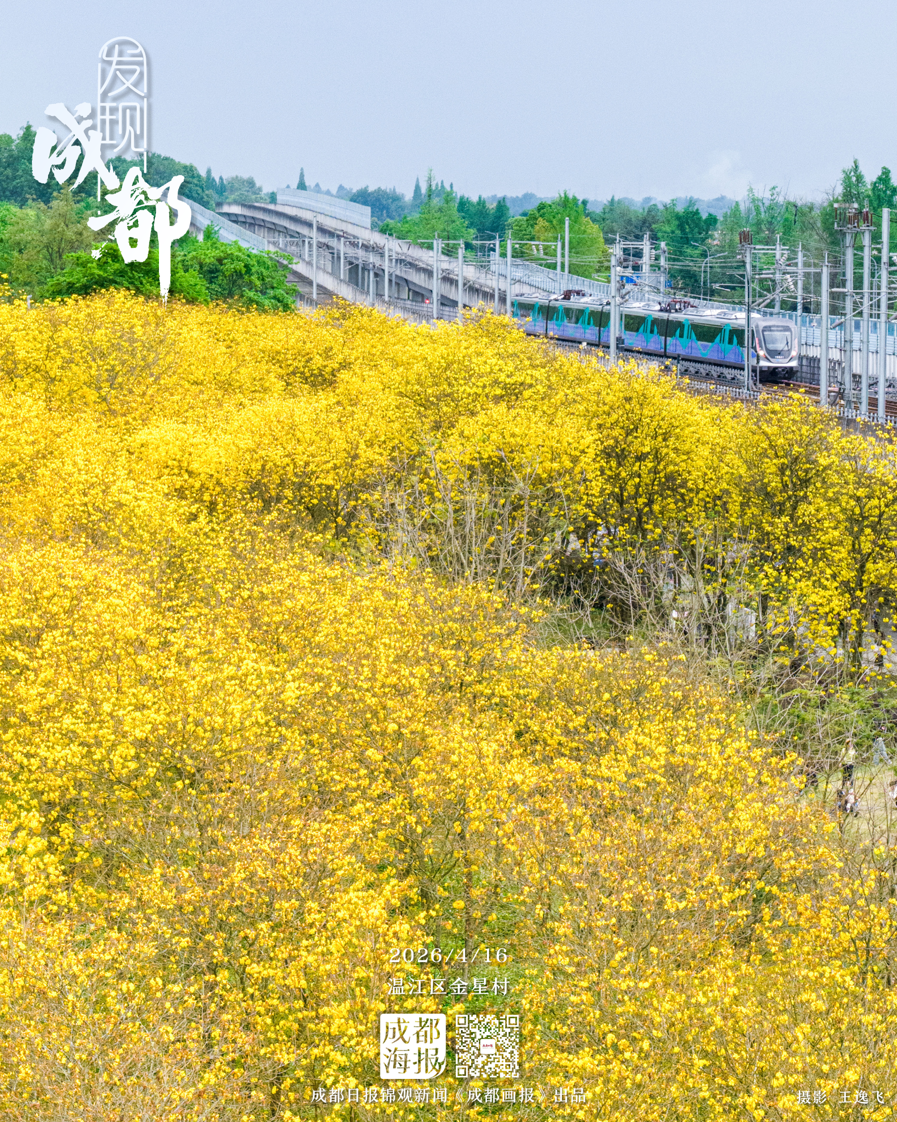 四月的成都,走進成都市溫江區金星村,黃花風鈴木正值盛花期,滿樹金黃的繁花與藍天相映,與穿梭而過的成都地鐵19號線列車“同框”,構成一幅春日列車與金色花海交相輝映的畫卷。這片金色花海之所以能夠“出圈”,最大的亮點在于交通便捷。地鐵19號線直達金星站,足不出站即可觀賞到大片黃花風鈴木花海,走下站臺便可抵達賞花區域。實習記者/攝影 王逸飛 制圖 曹勁松 嚴瑾 編輯 李懷英審核 鄭涵
