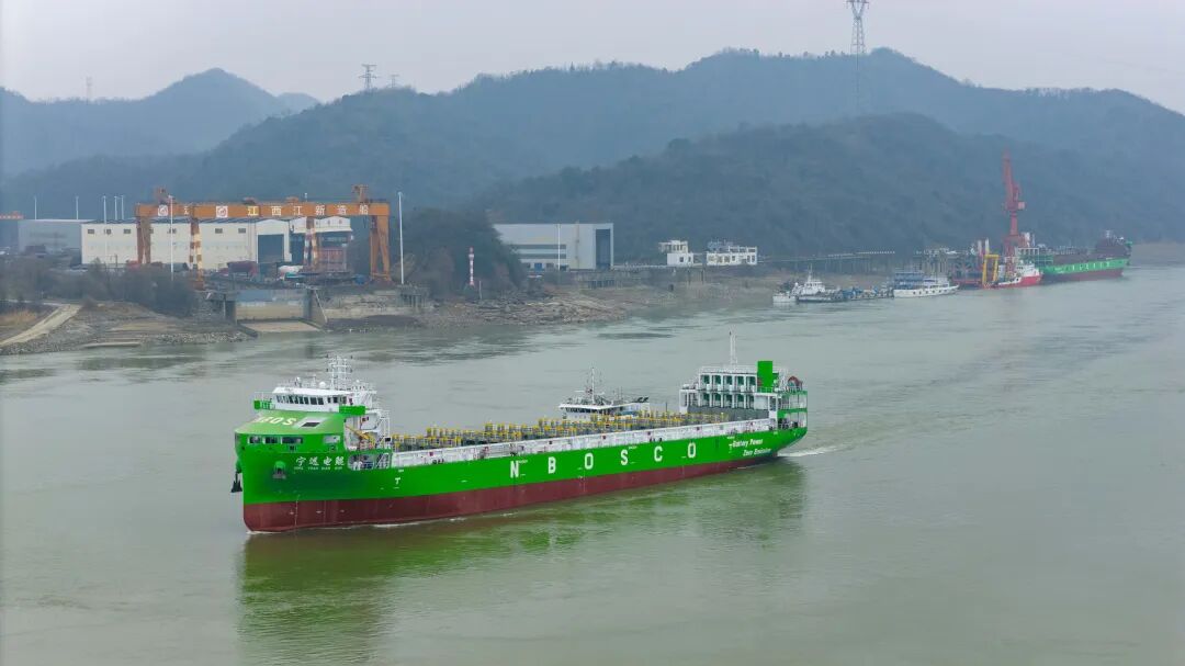4月15日,由中國船舶集團上海船舶研究設計院自主研發設計、第七〇四研究所提供新型純電推進系統的中國首艘、世界最大740TEU純電動智能集裝箱海船“寧遠電鯤”號,圓滿完成各項試驗,正式交付啟航。