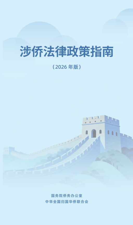 國務(wù)院僑務(wù)辦公室和中國僑聯(lián)聯(lián)合編印的《涉僑法律政策指南(2026年版)》(下稱《指南》)日前發(fā)布,內(nèi)容涵蓋海外僑胞和歸僑僑眷在中國工作、生活、學(xué)習(xí)、創(chuàng)業(yè)等所涉及的主要法律政策。