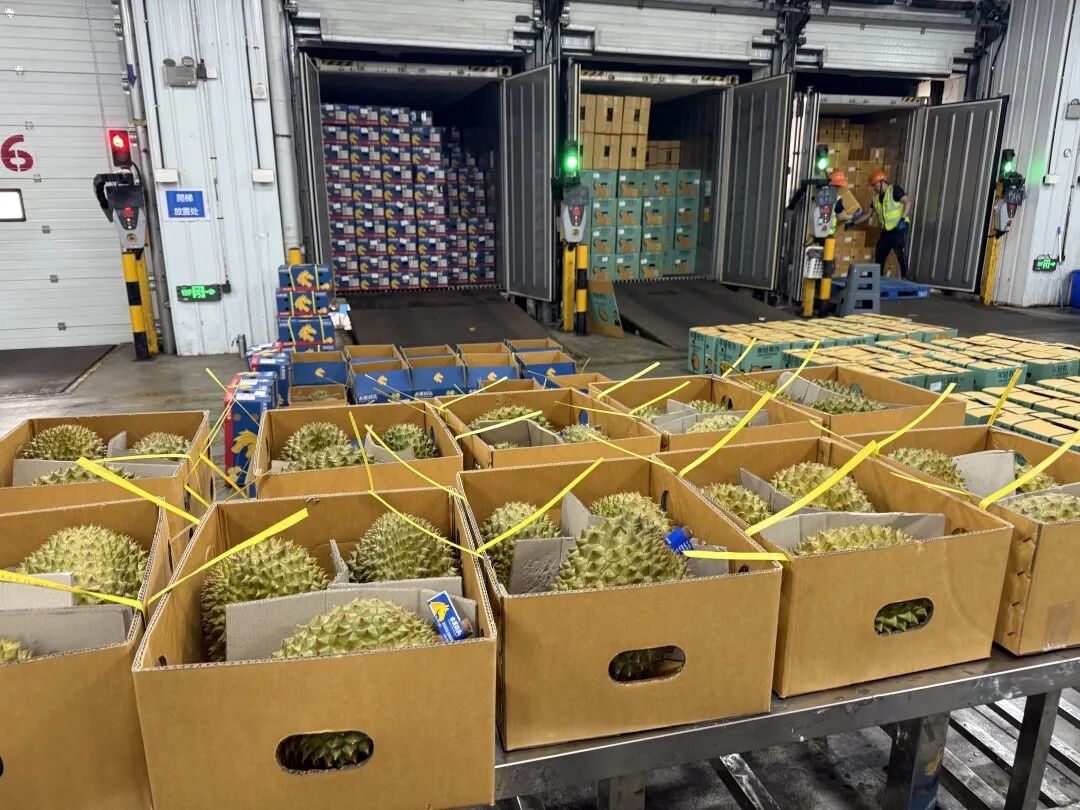 廣州口岸2026年首批海運(yùn)直航進(jìn)口的泰國(guó)鮮榴蓮。