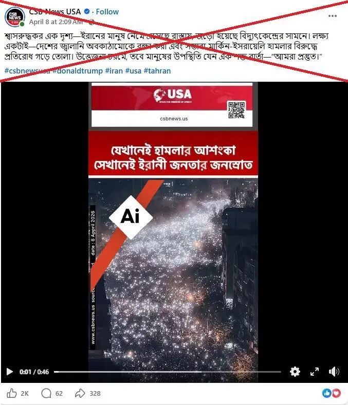 4月8日,一則用孟加拉語發布在海外社交媒體臉書上的帖子寫道:“震撼一幕——伊朗民眾走上街頭,聚集在發電廠前。他們的目標只有一個:保護國家能源基礎設施,抵御美國和以色列可能發動的襲擊。”