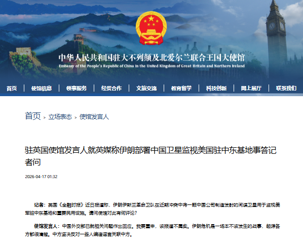駐英國使館發(fā)言人就英媒稱伊朗部署中國衛(wèi)星監(jiān)視美國駐中東基地事答記者問