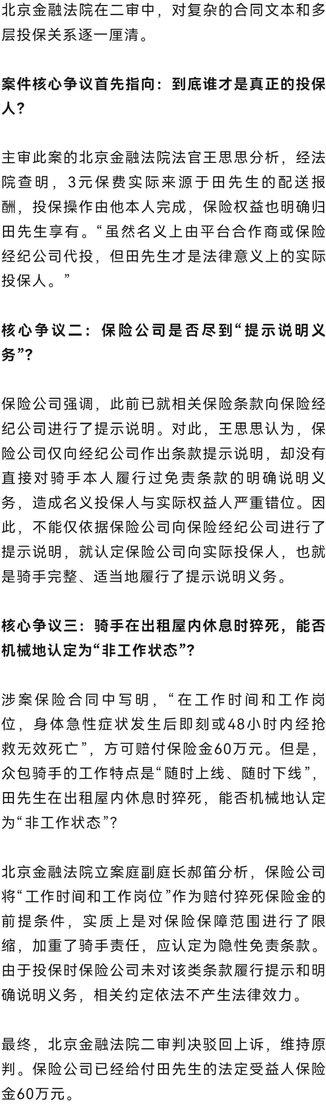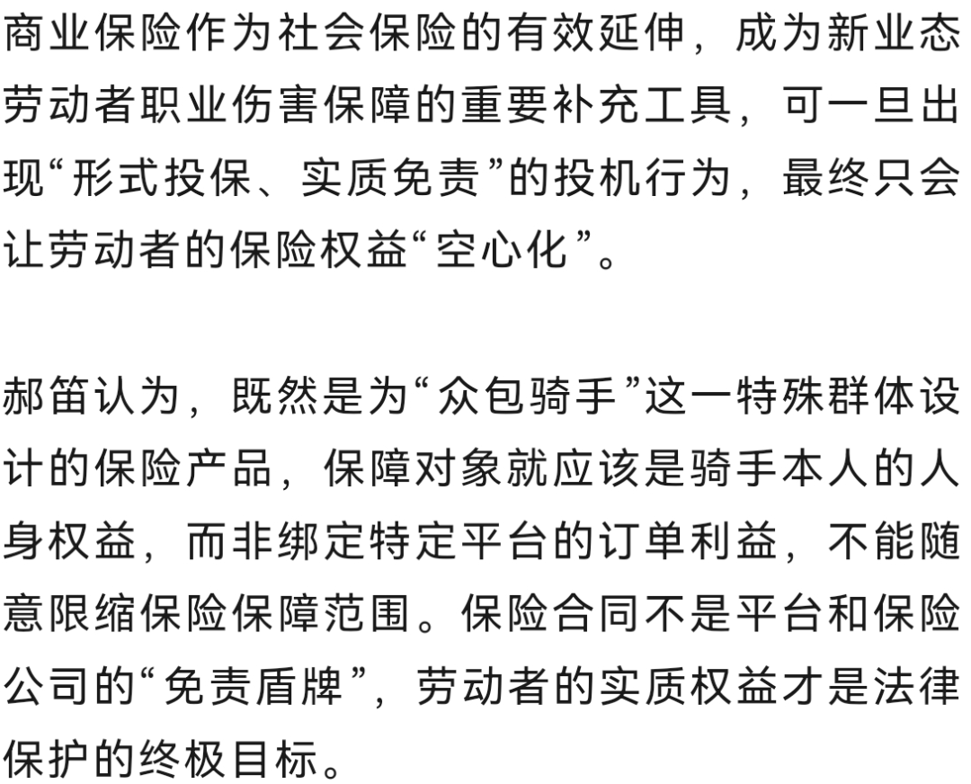 近日,北京金融法院作為典型案例發布的這起保險理賠案引發社會關注。騎手權益究竟該如何有效保障?又該怎樣杜絕“形式投保、實質免責”的投機行為?