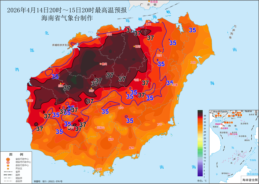 海南省氣象局2026年04月14日16時40分將高溫三級預(yù)警降為高溫四級預(yù)警:預(yù)計4月15日白天,海口、澄邁、臨高、定安、屯昌、儋州、白沙、昌江和東方等9個市縣的部分鄉(xiāng)鎮(zhèn)將出現(xiàn)37攝氏度以上的高溫天氣,請有關(guān)單位做好防暑降溫、森林防滅火等相關(guān)工作。