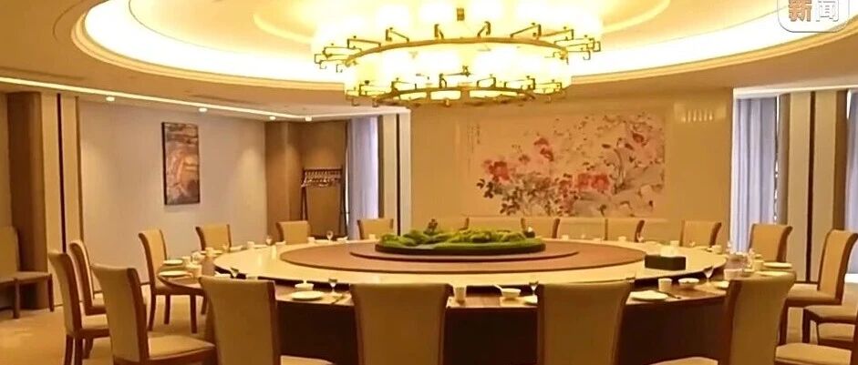 在園區(qū)的核心建筑上,“求是樓”“求真樓”“迎賓樓”“宴賓樓”等標(biāo)識碩大而清晰。跟側(cè)門邊上這塊不起眼的牌子,形成了鮮明對比。在宴賓樓里,記者注意到還有這樣的大包間,可以容納20多人同時(shí)就餐。