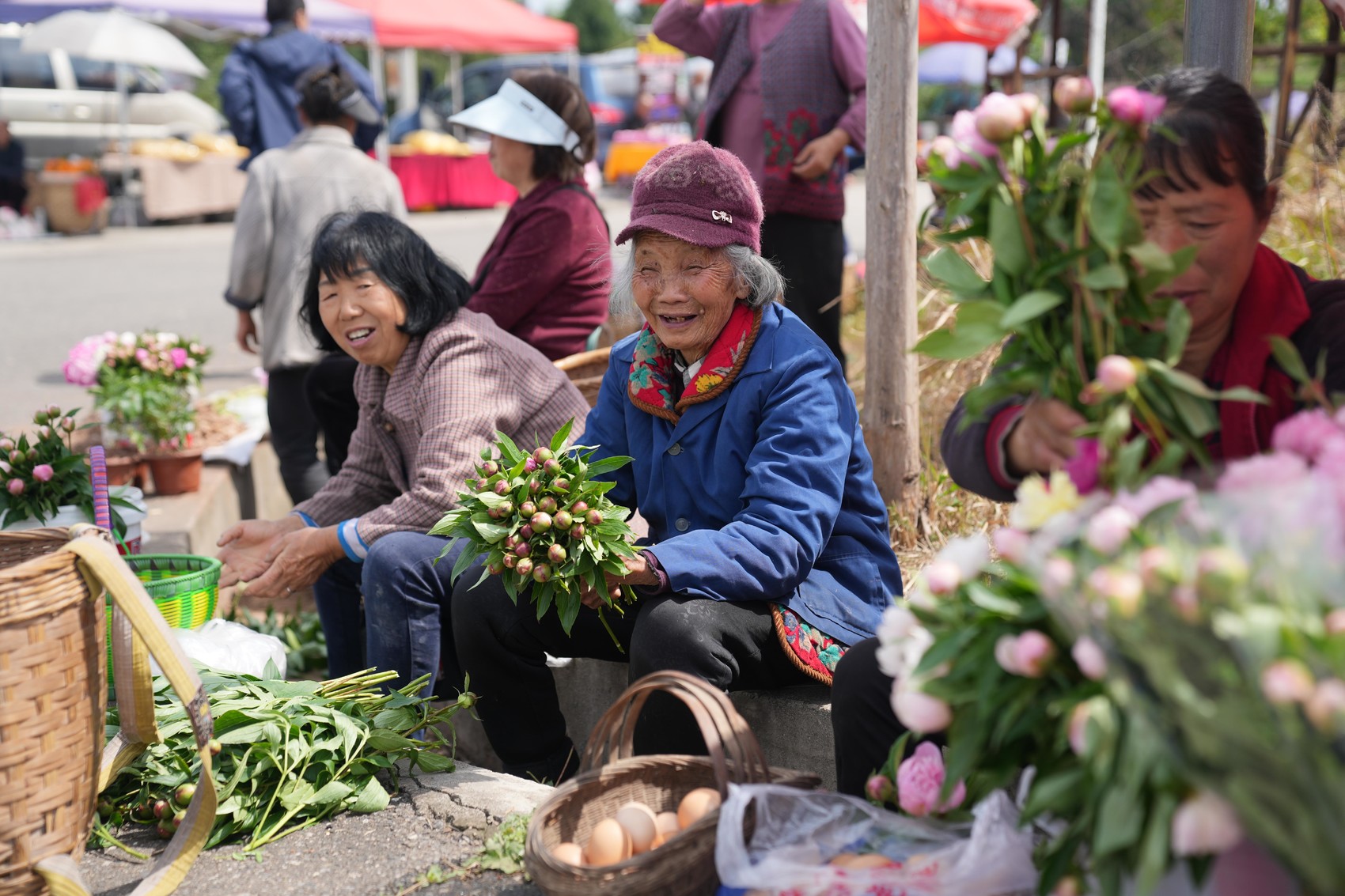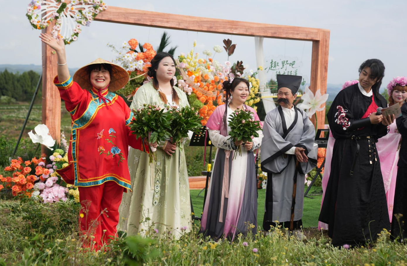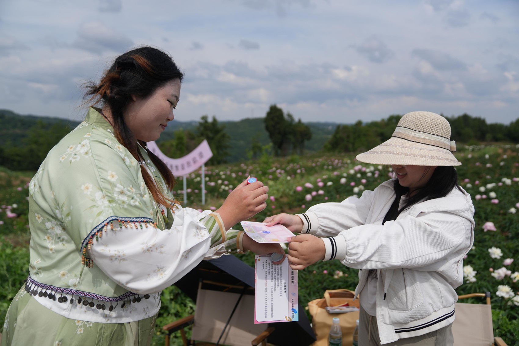活動現場笑聲連連,花海沿線的村道上也是熱鬧非凡。當天,93歲的豐世平帶著自家的鮮切花在路邊售賣,銷量好得她合不上嘴。34歲的向宗林也帶來培育的芍藥高端品種——巴茨拉、紅富士,引得不少游客駐足。以芍藥為媒、以劇本殺為橋,在中江縣集鳳鎮,鄉村文旅已從單一觀賞變成沉浸式體驗,芍藥產業也從規模種植走向全鏈發展。