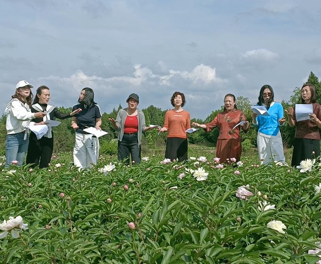 唐玉瓊與志同道合的朋友手持詩稿,輕聲誦讀:“這是花嗎?這不是花!這是豐收節前豪邁的宣言,這是億萬農人書寫的樸實答卷……”她們在花海中緩緩行走,一字一句,溫柔又充滿力量,與爛漫芍藥相映成畫。唐玉瓊笑著說,4月不僅僅是花開的時節,也是全民讀書月,她們選擇在花海中誦讀詩詞,就是想在賞美景的同時把春天留在心里。