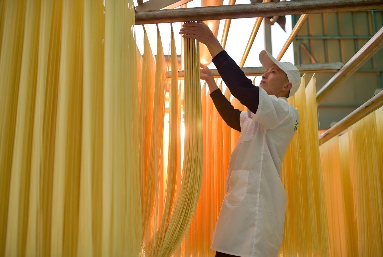 “90后”稅碧杰是稅家面條第五代傳承人、“稅袁古藺面”的老板。從曾祖父算起,稅家做面已超過130年。2014年,她接手自家面坊后,把幾十平方米的小作坊改建成200多平方米的加工廠,引進了新設備。包裝設計上,她用畫面再現磨面、揉面、做條等傳統流程,讓產品自帶赤水河畔的“紅色記憶”。2021年,“稅袁古藺面”獲得出口資質,拿到了走向世界的“通行證”。