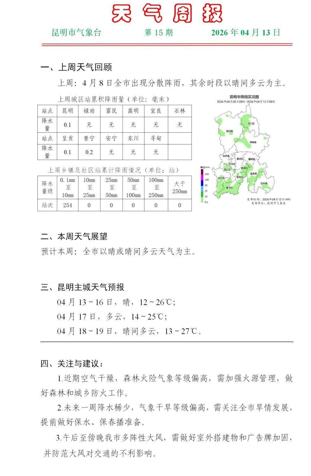 根據昆明市氣象臺發布的天氣周邊