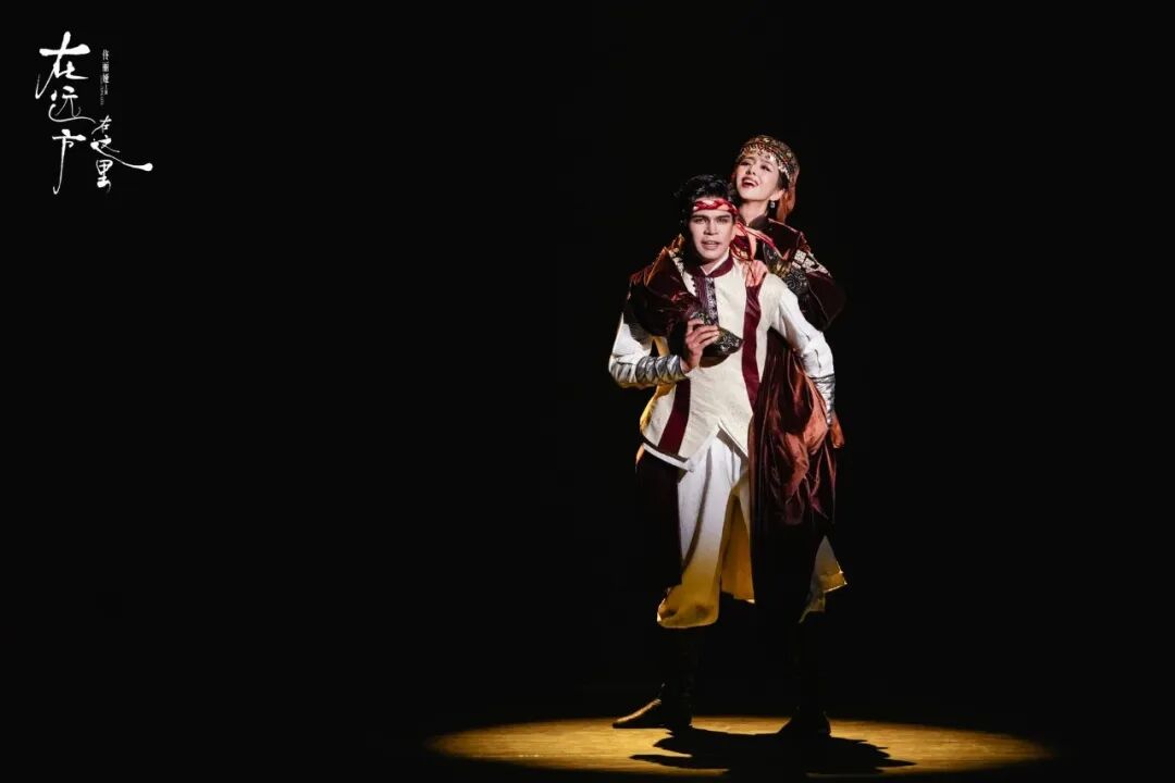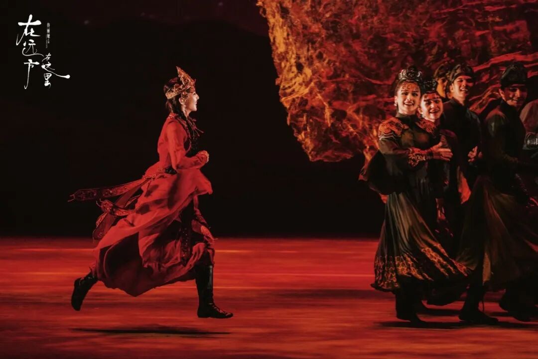 升級后的《在遠方·在這里》創造性地融入現代舞語匯,以“散文詩”的結構串聯起從童年到回歸的生命旅程;舞美視覺上更是極具突破,不僅通過400多米特制面料營造出“流動的沙漠”的質感,更利用45度斜坡舞臺和多媒體樓蘭古城影像增強了表現張力;內容上則深度挖掘錫伯族“結繩記事”、塔吉克族鷹舞等非遺元素,將地域符號升華為厚重的人文史詩,呈現出兼具傳統底蘊與當代審美的新疆圖景。