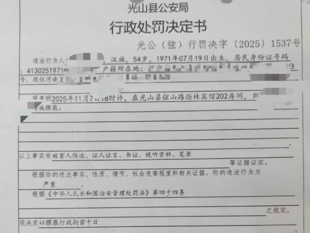 事發后,光山縣公安局以猥褻對劉某某作出行政拘留十日的處罰。