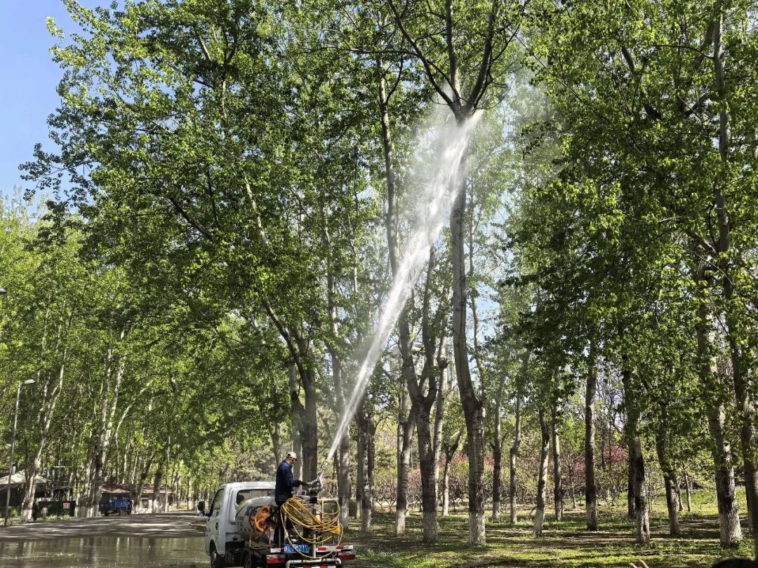 北京市城市管理委環衛處二級調研員張浩表示,針對飛絮影響,園林綠化、環衛等多部門聯手,形成防控閉環:園林工人在高空完成高壓噴水,將飛絮打落至地面,環衛工人同步跟進路面清掃保潔,對飛絮進行濕化處理,盡量收集。