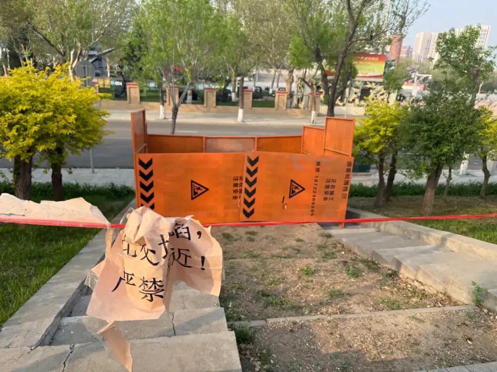 王先生還提到,事發(fā)當(dāng)天他趕到現(xiàn)場時(shí)發(fā)現(xiàn),那口井仍用草坪裝飾布蓋著,周圍沒有任何警示標(biāo)語。之后,他又多次前往事發(fā)地點(diǎn)查看,發(fā)現(xiàn)井口四周被纏上了尼龍繩進(jìn)行簡單圍擋,尼龍繩上貼了一張A4紙打印的警示語。