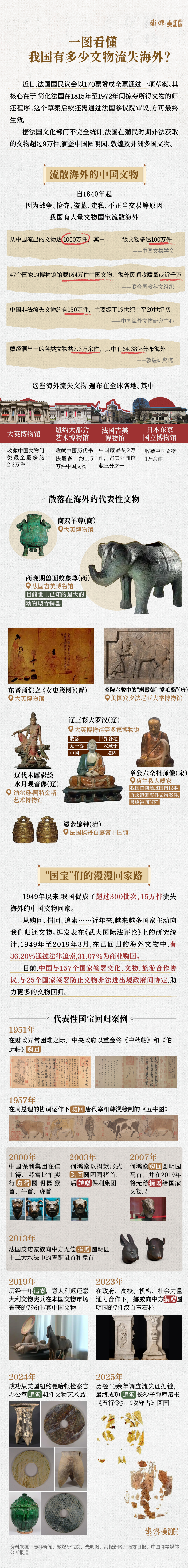 據法國文化部門不完全統計,法國各大博物館等機構中,在殖民時期非法獲取的文物超過9萬件,涵蓋中國圓明園、敦煌及非洲多國文物。