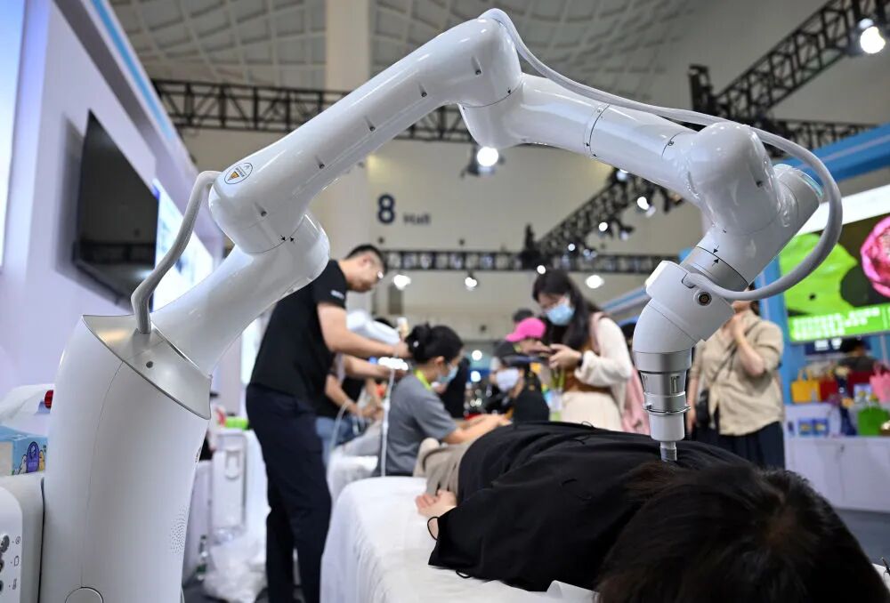 消博會現場一款智能按摩機器人。新華社記者 郭程 攝