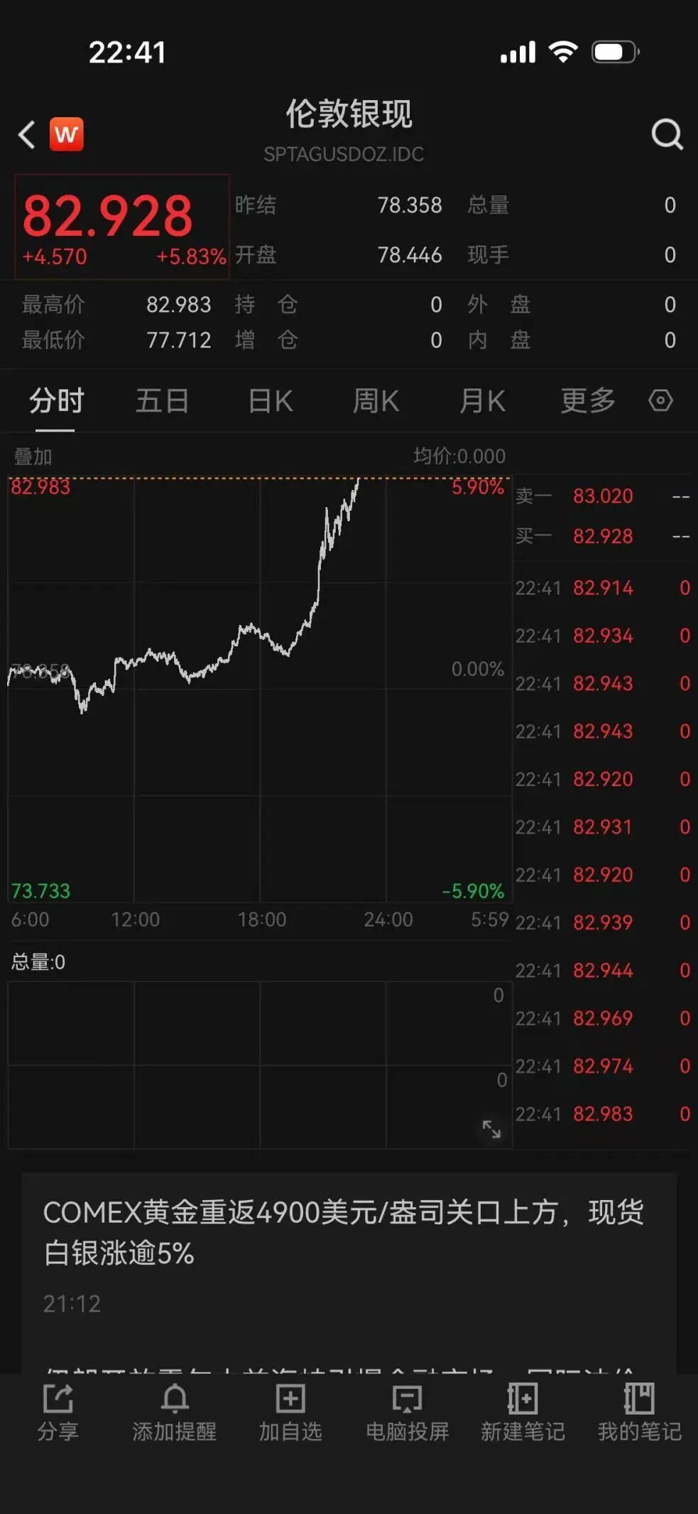 現貨白銀大漲5.83%,接近83美元/盎司。