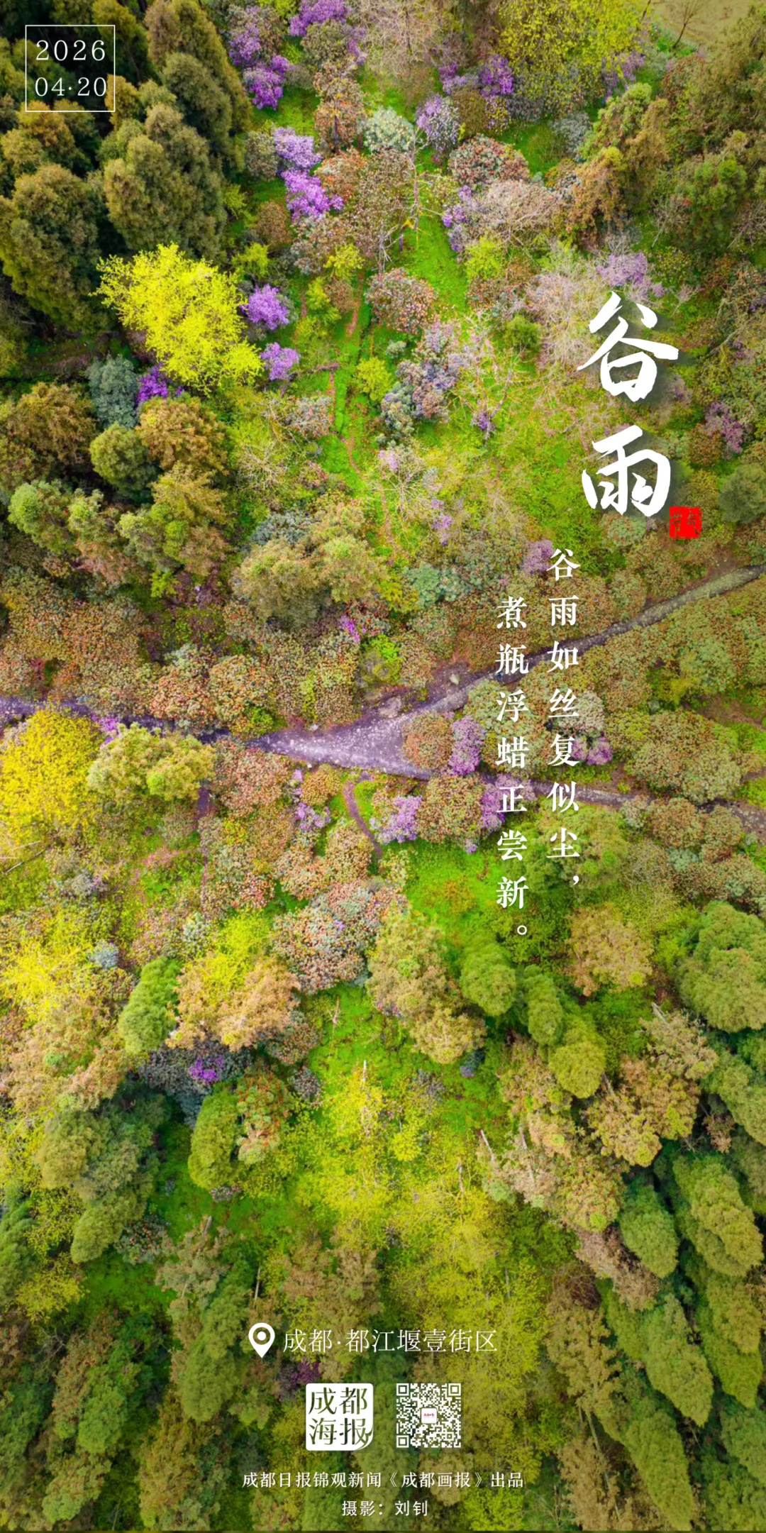 作為春季的最后一個節氣,谷雨攜溫潤春雨、攜盎然生機,漫過蓉城街巷,為成都繪就一幅煙雨朦朧、綠意綿延的暮春畫卷。