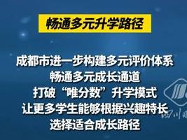成都市進一步構建多元評價體系,暢通多元成長通道,打破“唯分數”升學模式,讓更多學生能夠根據興趣特長選擇適合成長路徑。主要包括:中考成績平行志愿錄取、指標到校生、藝體特長生、青少年航空班、科技創新班、人文實驗班、強基計劃班、足球籃球排球預備隊、綜合高中、職普融通等,滿足不同潛質學生多樣化學習發展需求。此外,成都市還將穩步推進“小-初-高”12年和“初-高”6年貫通式培養擴面提質,堅持面向全體學生、著眼學生全面發展,不選拔、不掐尖,學生自愿報名、自愿退出,緩解中考升學焦慮。