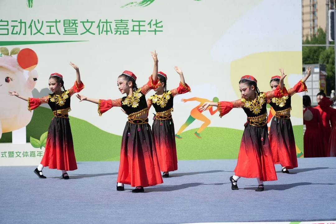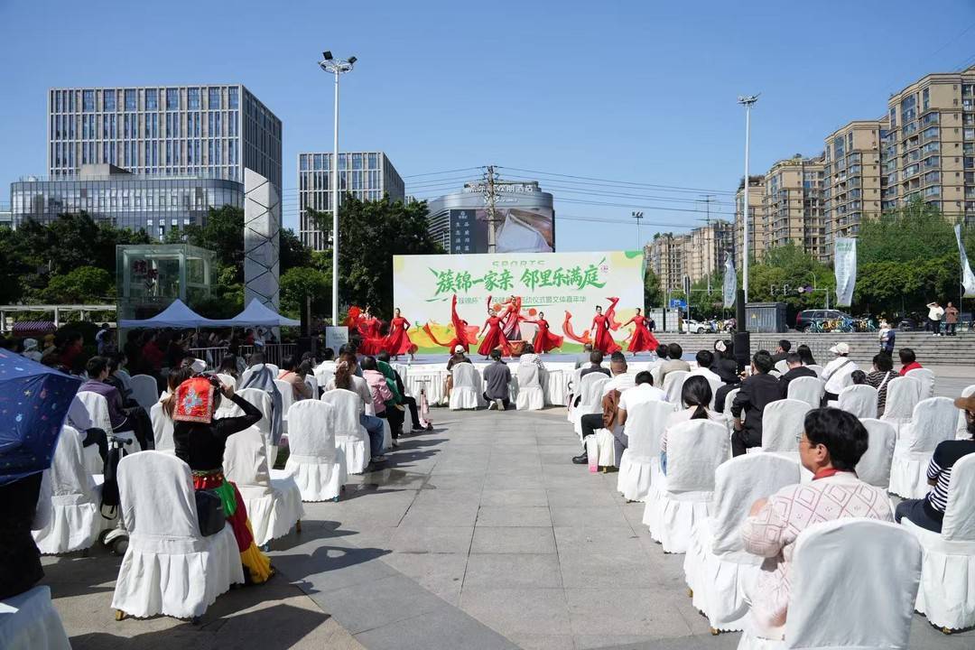 隨后,一個個精彩紛呈的表演將氣氛推向高潮。來自高碑社區“藍天舞蹈隊”舞者們帶來舞蹈《彝寨歡歌》,她們用優美的舞姿展現彝家山寨的歡樂場景,將觀眾帶入一個充滿民族風情的世界。緊接著,北京第二外國語學院成都附屬小學的同學們帶來活潑靈動的新疆舞蹈——《新哇哈哈》,孩子們充滿童真與活力的表演,贏得觀眾的陣陣掌聲。最后,舞蹈《中國紅》將氣氛推向頂點,一把紅扇舞出中國氣派,也舞出簇錦人的精氣神。